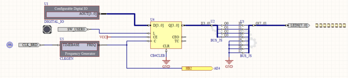 Nous pouvons constater qu’en laissant votre doigt appuyé sur le bouton poussoir SW0, Le compteur compte à partir de la valeur fixée par le bus AOUT. En relâchant votre doigt, le compteur est en mode chargement.