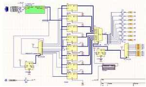 Il s'est alors imposé qu'il nous fallait 16 sorties : 8 pour sélectionner les colonnes à tour de rôle et 8 autres pour transmettre le message, led par led. Il restait maintenant à réaliser cette idée sur le logiciel Altium, et c'est au cours de la deuxième séance que cela fut mis en place.