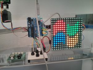 Le principe du projet est assez simple, en effet, il consiste à allumer et éteindre des leds sur une matrice 8x8 de leds à partir d'une interface web. Ainsi l'utilisateur peut créer l'image qu'il souhaite à travers son navigateur. Il a été réalisé par Tissot Elise, Tiraby Céline et Smagghe Cyril.