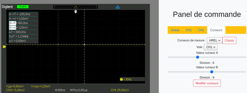 En testant quelques commandes en mode SCPI, on s'aperçoit qu'elles ont le comportement souhaité sur l'oscilloscope.