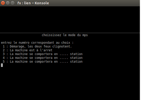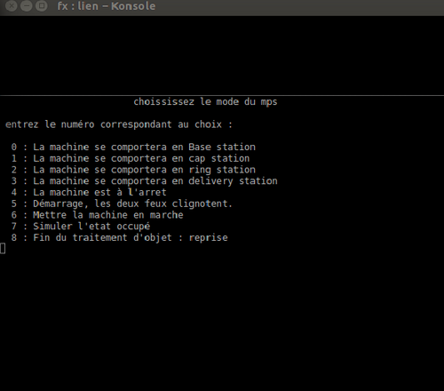 Nous avons, pour la partie informatique, rectifié la liaison série qui n'est plus bloquante. Cette partie là nous permet maintenant d'avoir toutes nos fonctions essentielles au programme. Le reste du travail est de simuler chaque sorte de machine. Il ne devrait pas y avoir de problème majeur pour cette partie car elle n'utilise que des fonctions déjà testées. On nous a demandé de travailler sur l'interface qui permet de communiquer avec l'arduino pour pouvoir choisir le mode. Nous avons donc pris le temps de faire une interface facile d'utilisation et bien expliquée. Cette interface n'est pour l'instant pas définitive mais elle est très proche du rendu finale.
