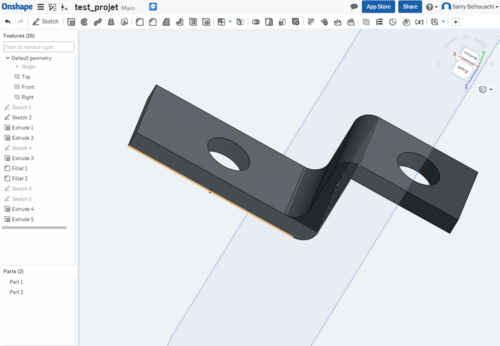 Nous devions aussi mettre des barrières sur le convoyeur mais il nous manquait quelques pièces c'est pourquoi nous avons pris la décision suivante, réaliser les pièces en 3D. Nous avons donc utilisé le logiciel Onshape et avons réalisé la conception de la pièce suivante.