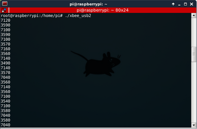 Le mise en route de la Raspberry ayant pris plus de temps que prévu, nous avons juste eu le temps de brancher le module XBee en USB afin de visualiser sur minicom les données reçu par le Xbee. Nous recevons bien les données envoyées par le capteur. Enfin, il a fallu définir une protocole afin de bien comprendre les valeurs reçues : une valeur sur deux correspondra à l'axe X et l'autre à l'axe Y ; les valeurs seront reçues en décimale et chaque valeur aura pour taille 4 chiffres.