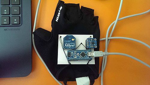 • Création du gant : fixer dessus les flex sensor, l'accéléromètre et l'Arduino.