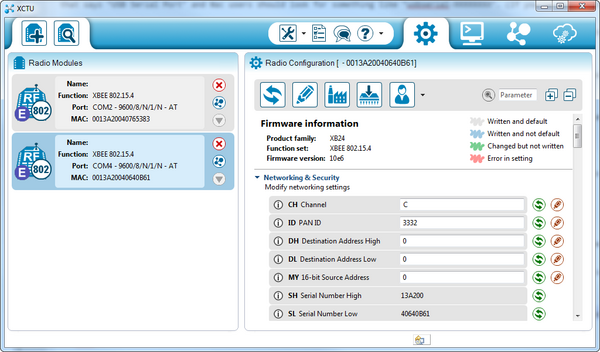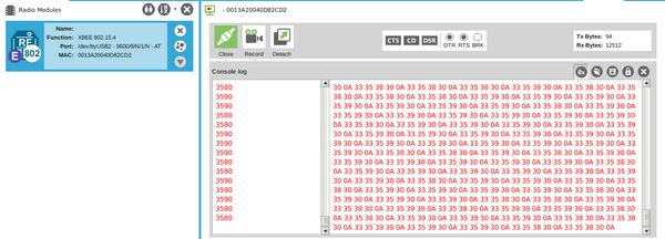 Pendant la deuxième semaine, avons échangé l'Arduino Micro par une Arduino Nano. La semaine à consisté en des tests sur les modules Xbee avec le logiciel X-CTU. Ce dernier propose une interface graphique et permet de paramétrer les modules, ainsi que de visualiser ce que ces derniers reçoivent. On peut également les faire envoyer des données. Le logiciel se présente sous la forme suivant :