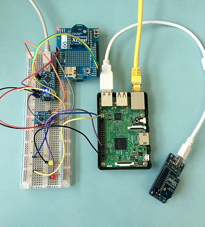 • Deux modules Xbee Shield seront montés sur l'Arduino et la Raspberry Pi afin de gérer la liaison sans fil entre la télécommande et la voiture. Le protocole Zigbee permet une transmission de données sur une portée de 30m en intérieur et jusqu'à 100m en extérieur, ce qui semble convenable pour le projet.