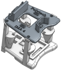 Au niveau du châssis, la première "version finale" a aussi été validée. Les cours de Mécatronique (filière SA) étant basés sur la modélisation 3D sur Onshape, le projet à été retravaillé intégralement afin d'offrir plus de possibilité. L'impression au FabLab sera réalisée au cours de la prochaine semaine afin de vérifier la solidité et la bonne conception de la pièce, ainsi que la facilité de montage, par exemple au travers des dimensions.
