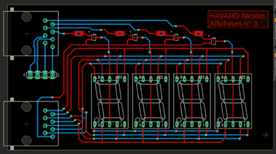 - Soudure des composants sur les cartes "afficheurs" et tests de celles-ci : la manipulation des digits par les transistors se fait comme espéré