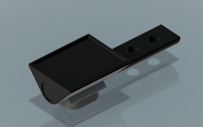 Pour pouvoir utiliser la simulation avec le traitement d'image d'openCV, nous avons modélisé un objet en 3D avec Fusion360 afin de le fixer au bout d'une canne en bois. Cet objet se fixe avec deux vis et contient deux fonctionnalités :