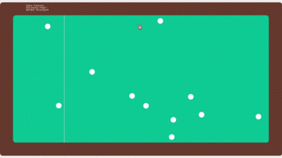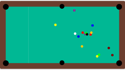 On remarque que le bug de collision est très présent. De plus, il est impossible de jouer le prochain coup quand ce bug est présent. En effet, même si les boules ne bougent pas, la simulation considère que leur vitesse n'est pas nulle et elle empêche donc que le prochain coup soit joué. La prochaine étape est de corriger ces problèmes.