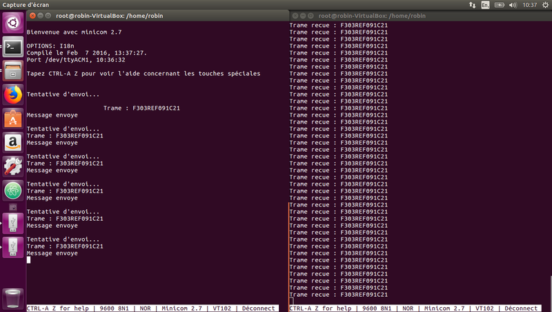 Une fois les paramètres définis et la radio configurée, j'ai été capable d'émettre mes trames toutes les 10 secondes (en émission continue) à partir de la fonction Send :
