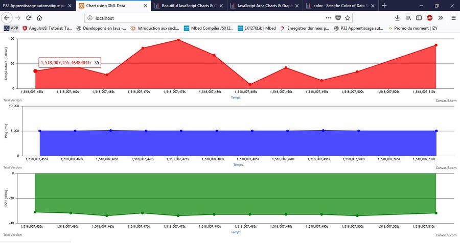 Pour réaliser cette base d'application web, je me suis servis de CanvasJS : http://canvasjs.com Les fichiers de données utilisés par l'application sont volontairement remis à 0 à chaque lancement du programme python.