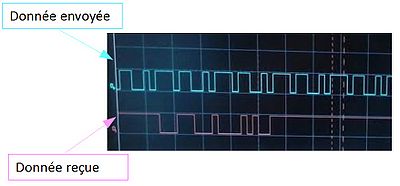 Visualisation des bits reçus et envoyés sur l'analyseur logique.