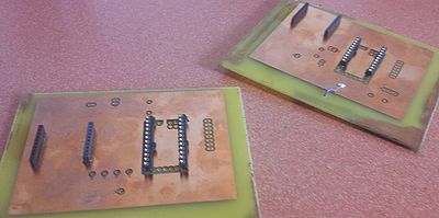 Une fois les cartes imprimées, on a commencé le perçage et le soudage des supports tulipes qui accueilleront les composants (Xbee, Arduino …). Perçage et soudage finis, on a fait des essais sur les différentes pins pour vérifier que les liaisons électriques sont bien définies, et qu’il n’y a aucun faux contact entre nos pins.