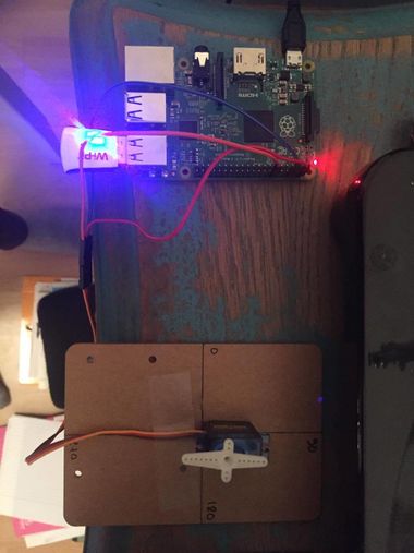 - x1 Servomoteurs pour faire pivoter selon 2 axes la structure où seront fixés les caméras (360°).[1 fourni 27/01/2015]