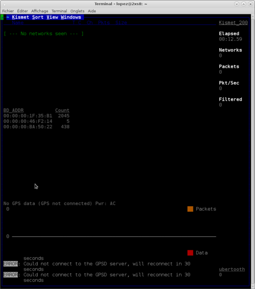 Pour capturer des paquets Bluetooth avec Kismet, il faut suivre la procédure suivante :