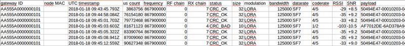 - Concernant le sniffer LoRaWAN et la réémission de chaque paquet reçu, nous allons partir sur un script Python qui fera la lecture des fichiers CSV qu'enregistre un programme fourni par Semtech, contenant tous les caractéristiques des paquets reçus. Celui-ci enverra par la suite par liaison série à notre shield SX1276 relié à la gateway tous les paramètres radios et la payload de chaque paquet pour qu'ils puissent les retransmettre.
