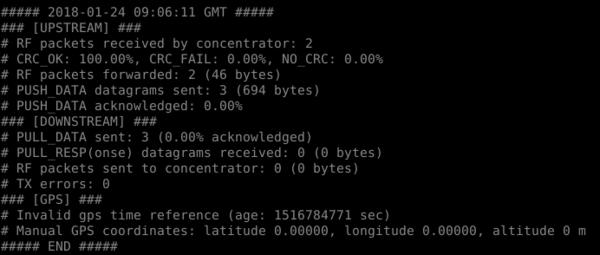 | + | * L'interface web est fonctionnelle et accessible en local. On utilise VNC pour pouvoir accéder à cette interface. Les paquets sont bien reçus par notre "packet-forwarder", même service que dans l'ancienne implémentation pour faire l'interface hardware/software sur notre gateway. | ||