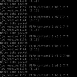 • Nous pouvons maintenant utiliser notre gateway pirate pour sniffer les paquets radios dans son périmètre. L'attaquant sera représenté par cette gateway ainsi que le noeud SX1276 que nous retirerons du réseau pour que l'attaquant ait de quoi émettre des paquets, nécessaire pour effectuer une attaque par rejeu.
