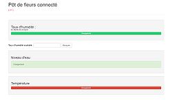 | − | + | * Affichage des données (humidité, température et lumière) sur une interface Web | |