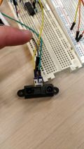 [[Fichier: 34818911_2198525003726573_2836142689970290688_n.jpg|vignette|upright=0.75|120px|Le capteur de distance]]<br> | [[Fichier: 34818911_2198525003726573_2836142689970290688_n.jpg|vignette|upright=0.75|120px|Le capteur de distance]]<br> | ||