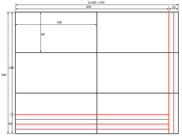 Avec ce découpage nous avons donc notre piste de 3x2 mètres et 6*80 cm + 4*160 cm + 4*140 cm = 1680 cm de murs de 10 cm de haut chacun (nous avons en tout 1400 cm de murs sur notre piste). | Avec ce découpage nous avons donc notre piste de 3x2 mètres et 6*80 cm + 4*160 cm + 4*140 cm = 1680 cm de murs de 10 cm de haut chacun (nous avons en tout 1400 cm de murs sur notre piste). | ||