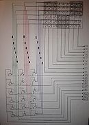 Suite aux résultats du multiplexage des LEDs, nous avons commencé la réalisation du codage de l'allumage de celles-ci selon le schéma complet suivant :