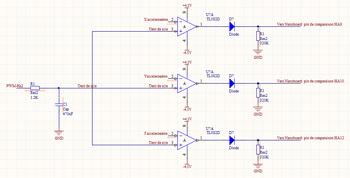 Le schéma précédent a été répliqué 3 fois afin de gérer la comparaison de la PWM avec les signaux x, y et z du module gyroscopique.
