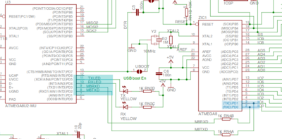 [[Fichier:arduino_schematic_usb.png|300px|thumb|center|Connections atmega16u2 atmega328p sur le shield arduino]]