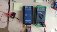 Suite à ces tests, nous vérifions le bon fonctionnement du convertisseur 24 VDC -> 12 VDC acheté. Pour cela nous mesurons sa tension à vide lorsque nous l'alimentons aux batterie délivrant une tension quelque peu supérieure à 25 V.