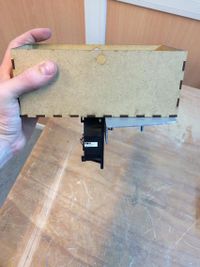 Nous avons donc décidé de garder un moteur ainsi qu'un capteur et une LED pour éviter de perdre du temps et ainsi pouvoir tester notre communication série. Voici une petite vidéo montrant le comportement de notre capteur qui en captant la présence d'une personne à moins de 10cm en face de lui, permet donc au moteur d'ouvrir la porte pendant un certain temps, permettant alors à la personne d'entrer dans la pièce. La lumière s'allume alors dans la pièce , signalant ainsi sur le site la présence d'une personne (en colorant la pièce correspondante).