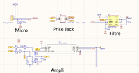 Contrairement à ce que nous pensions faire la semaine précédente, nous avons décidé de partir sur un micro avec ampli intégré (voir liste des composantes). Désormais, lors du câblage de la carte, nous pourrons choisir de passer soit par le micro, puis un filtre, soit par la prise jack + ampli avant de passer par ce même filtre.