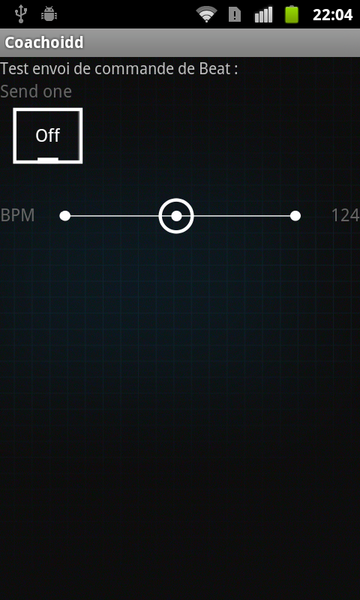 | actuel | 8 novembre 2011 à 14:02 | 480 × 800 (639 Kio) | Nlefebvr (discussion | contributions) | Application de test01 avec un envoi à 124 bpm. |