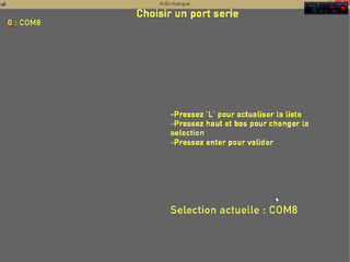 Projet P12 Art Embarqué 2015, 2nd page de l'application finale, sélection de port série