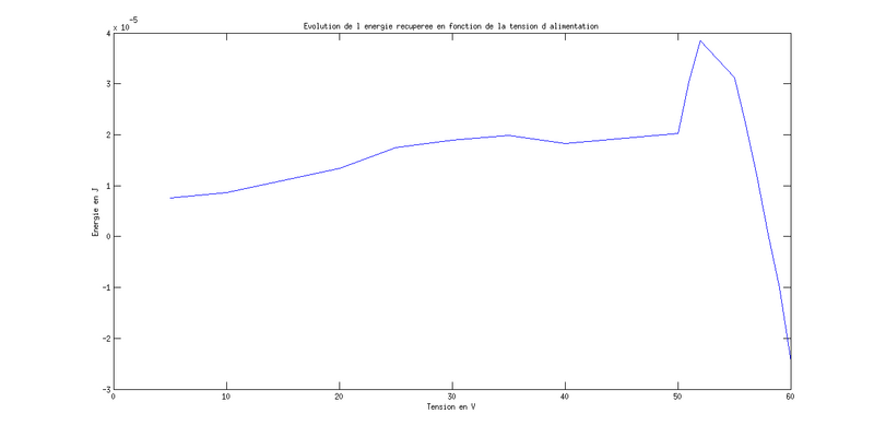 P32 : Courbe caractéristique de l'énergie récupérée par le montage en fonction de la tension d'alimentation