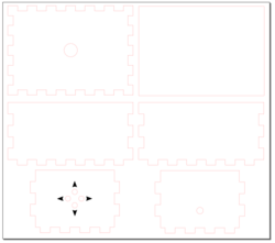 Nous nous sommes alors tourné pour la découpe laser disponible au Fabricarium et de réaliser des boîtiers en bois. Le processus est rapide (moins de 10 min) et le rendu est assez esthétique. On crée la boite à partir d'un site de génération de boîtes. Cela va générer un fichier SVG et à l'aide du logiciel Inkscape on ajoute les différents éléments à intégrer: trous, gravures. Plus d'information concernant concernant la découpe laser au Fabricarium disponible ici.