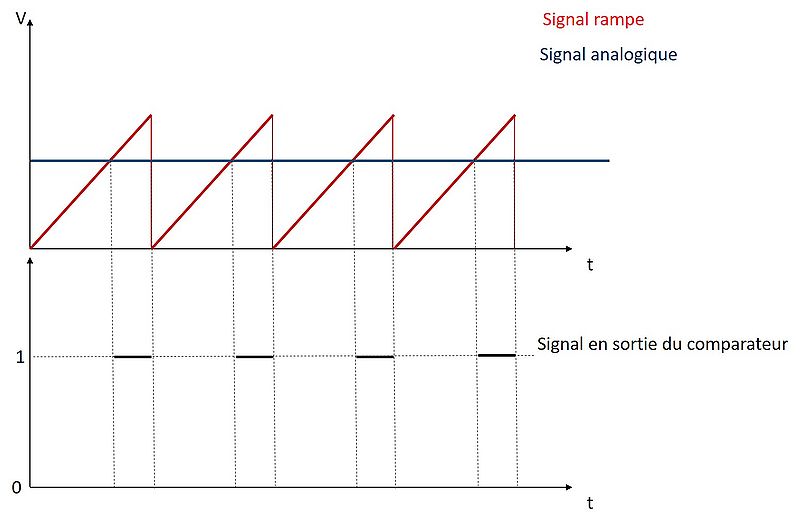 Pour la conversion nous utilisons un compteur qui s'incrémente à une fréquence donnée et est remis à zéro quand le compteur passe à 1.