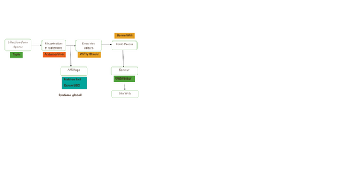 Nous avons essayé de rassembler les codes des deux parties sous un même code. Cependant nous avons eu des problèmes, à première vue liés aux Cheap Select des modules WiFly et de la matrice de LEDs. Nous avons essayé de nombreuses configurations des pin des Cheap Select, mais en vain pour l'instant.