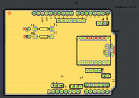 A la vue de notre câblage sur la platine de test, nous nous sommes dit qu'il fallait absolument faire un shield pour arduino pour avoir quelque chose de plus propre et aussi plus simple pour nous lors de la phase de test. Nous avons dessiné sous fritzing un shield qui viendra donc se placer sur l'arduino et qui fera le lien entre l'arduino, le moteur, le contrôleur moteur et l'alimentation.