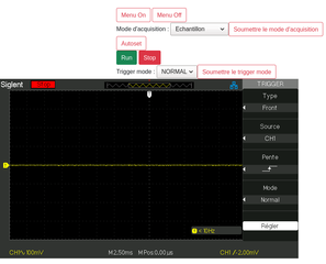 Révision datée du 27 mai 2021 à 13:46 par Lwadbled (discussion | contributions) (Ajout de fonctionnalités sur l'interface de commande de l'oscilloscope)