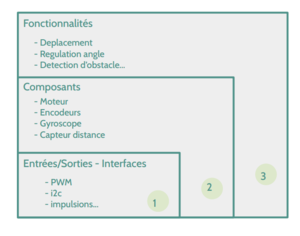 Séparation du travail a effectuer pour le robot entre une boucle du moteur DC(niveau 1) et une boucle du niveau supérieur(niveau 2) pour asservir l'angle d'inclinaison du robot.